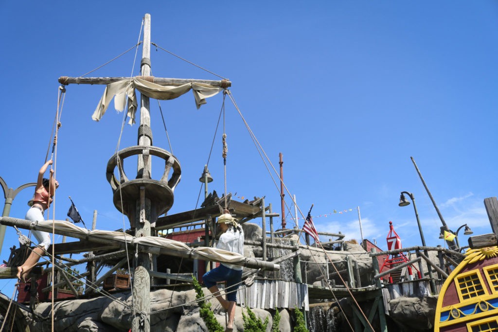 Castaway Cove where the Wheeler family became shipwrecked and used remains from the ship to design two unique adventures. Choose from the shipwreck bay course which takes you through caves, and past thunderous waterfalls, or head to the Crow’s nest, which travels to the top of the cove with amazing aerial views of waterfalls and plant life.