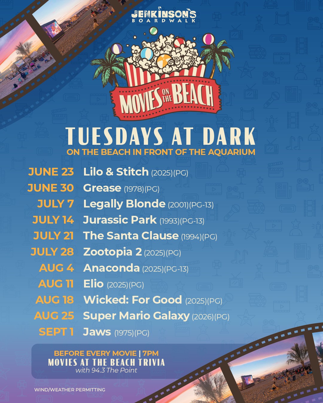 We can’t wait to see you at Movies on the Beach 2026 for another incredible summer of entertainment at Jenkinson’s Boardwalk in Point Pleasant Beach. Tag your friends, share the lineup, and make Tuesday nights your new favorite summer tradition.