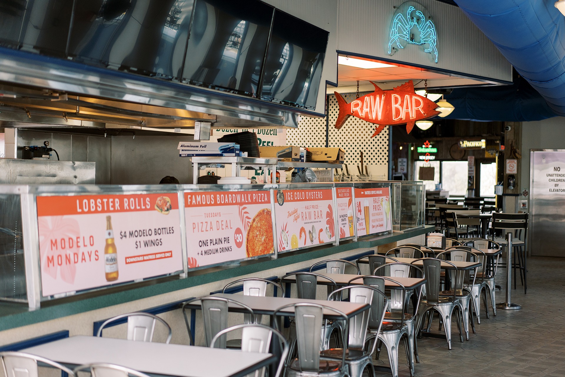 There are multiple sit-down restaurants at the boardwalk with plenty of indoor seating. Our recommendations are the Boardwalk Bar and Grill and the Pavilion Oceanside Dining. Enjoy happy hour specials all day at the Boardwalk Bar and Grill Mondays through Fridays, and open to 6pm on the weekends, including half-price House Margaritas and half-price frozen drinks! Don’t let rain in the forecast prevent you from enjoying some amazing food and beverages while visiting Jenkinson’s Boardwalk!